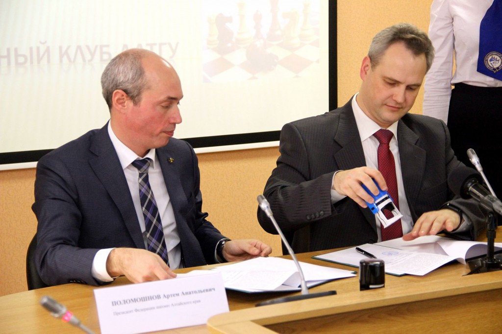 В ходе мероприятия президент Федерации шахмат Алтайского края отметил, что соглашение позволит в дальнейшем провести на базе опорного вуза Чемпионат России 2019 года по шахматам среди студентов, а также ряд других весомых соревнований. Подписание соглашения завершилось небольшой пресс-конференцией и обменом символическими шахматными ходами – открытым дебютом как символом начала перспективного сотрудничества.
