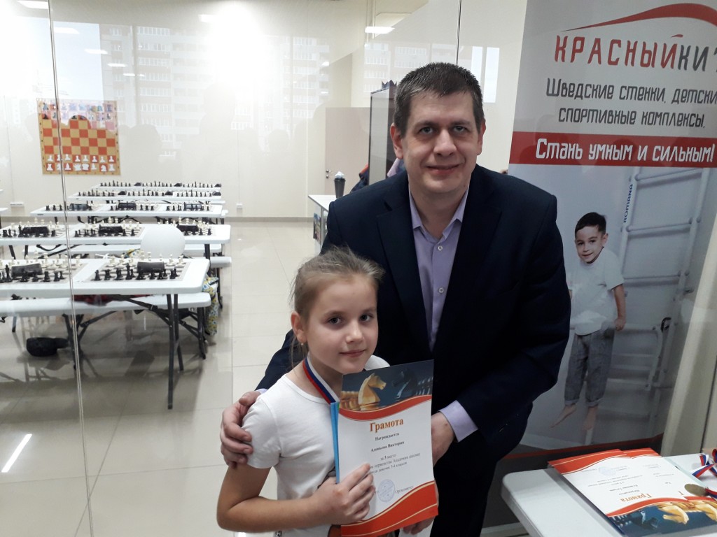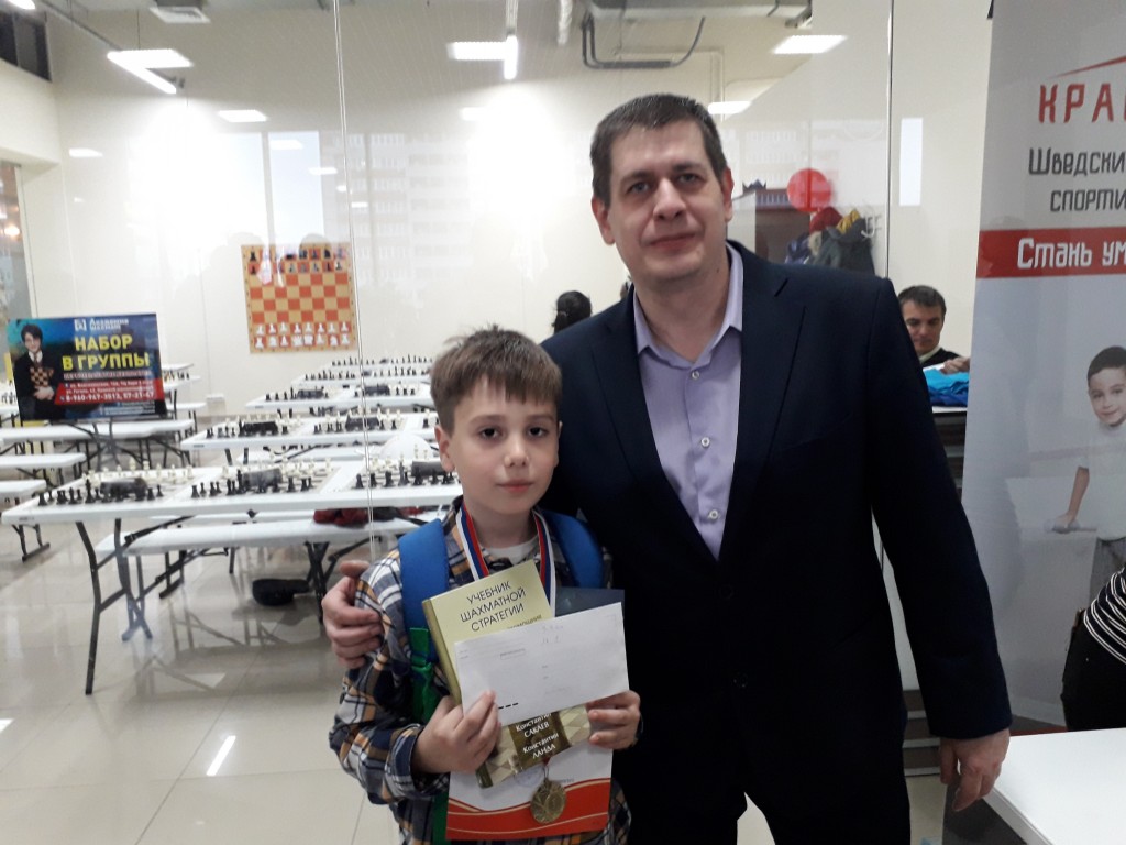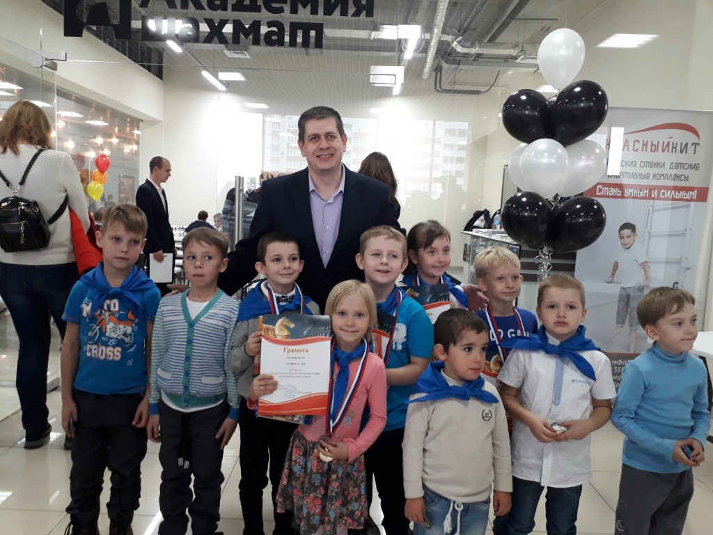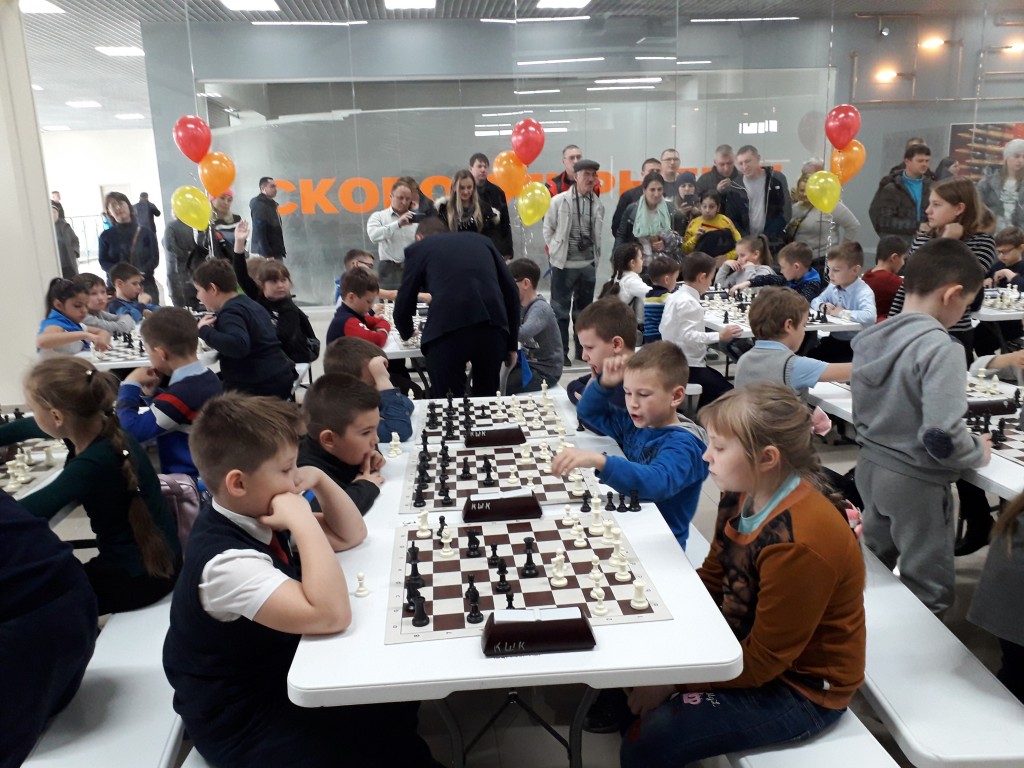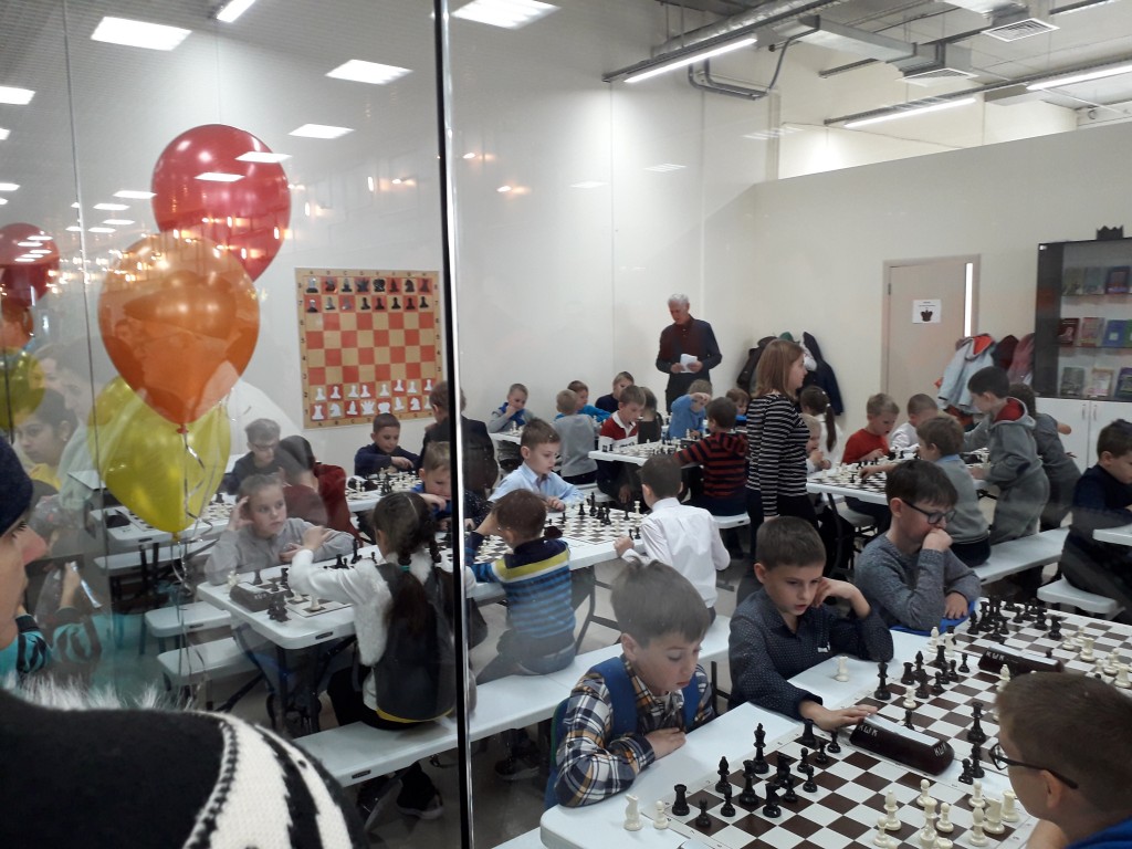 Вроде бы дистанция небольшая, но праздничный турнир занял весь день. Дети играли в двух удобных, празднично оформленных залах. Родители и тренеры могли следить за игрой ребят в режиме онлайн через стеклянное ограждение. Страсти на досках кипели нешуточные! Когда играют малыши, судьям бывает порой очень сложно принять правильное решение. Рапид-турниры проходят без записи, и как определить, кто прав, если оба короля стоят под шахом? А такие ситуации были не редкостью.