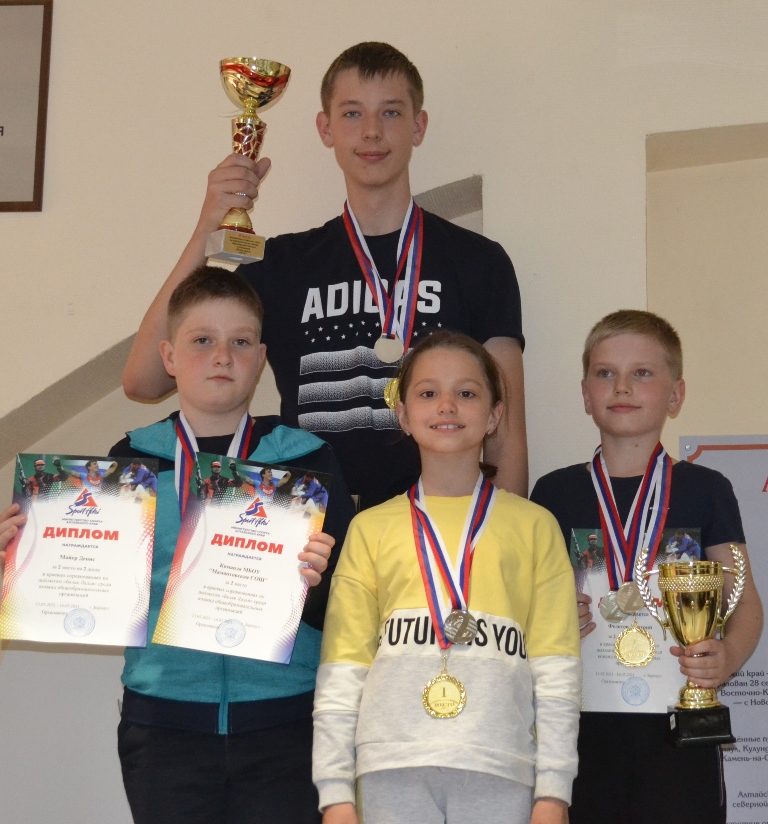 Хотя изначально сразу несколько команд, в том числе и бийская, рассматривались в числе основных претендентов на серебро и бронзу. В итоге небольшую сенсацию преподнесла мамонтовская команда (тренер – Борис Петрович Третьяк). Первую доску здесь надежно закрыл Роман Федотов, проигравший в турнире лишь одну партию Юсупходжаеву. На третьей доске уверенно набрал 5,5 очков его брат Дмитрий, а на второй доске здорово выступил Денис Майер – тоже 5,5 очков из 7. И даже без 3 очков, набранных Катей Деминовой, мамонтовцы не смогли бы стать серебряными призерами турнира. В ключевых матчах за медали (6 и 7 туры) мамонтовцы обыграли барнаульскую школу № 128 (2,5:1,5) и команду из Славгорода (3:1). В итоге отдельно им были вручены золотые медаи и кубок за лучший результат среди сельских коллективов.