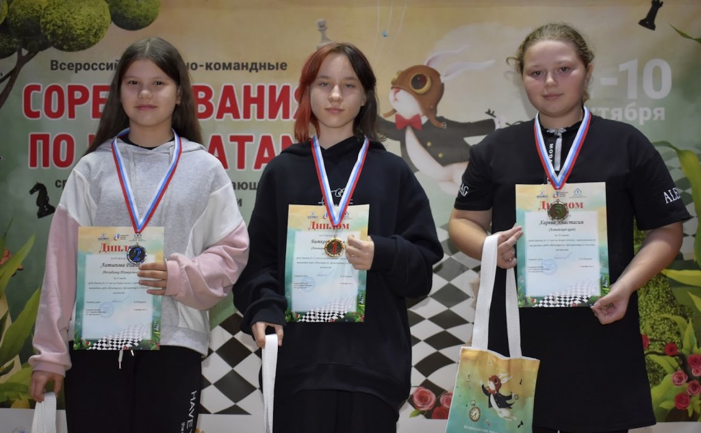 Также мы отметим результат Насти Харевой из Романовской района (на фото – справа), которая в зачете по своему возрасту стала бронзовым призером, а в общей таблице заняла 11-е место с результатом 5,5 очков из 9.