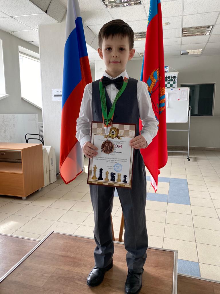 Воспитанник Академии шахмат Алтайского края Вадим Королев стал бронзовым призером первенства Сибири среди мальчиков до 9 лет. Турнир завершился в минувшие выходные в Барнауле. Это единственный медальный успех нашего региона в этом соревновании в родных стенах. Отметим, что в течение нескольких лет наши самые юные шахматисты не могли попасть на подобных первенствах даже в десятку. И вот наконец-то случился определенный прорыв. Вадим, имея лишь 19-й стартовый рейтинг, набрал 7 очков из 9 возможных и завоевал бронзовую награду. Причем до последнего тура Королев претендовал на «золото», но проиграв решающую партию пропустил вперед томских ребят – Диму Крымского («золото») и Игоря Радионенко («серебро»).