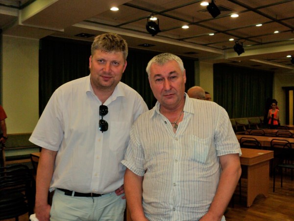 На снимке: Виктор Гемпель с гроссмейстером Алексеем Шировым