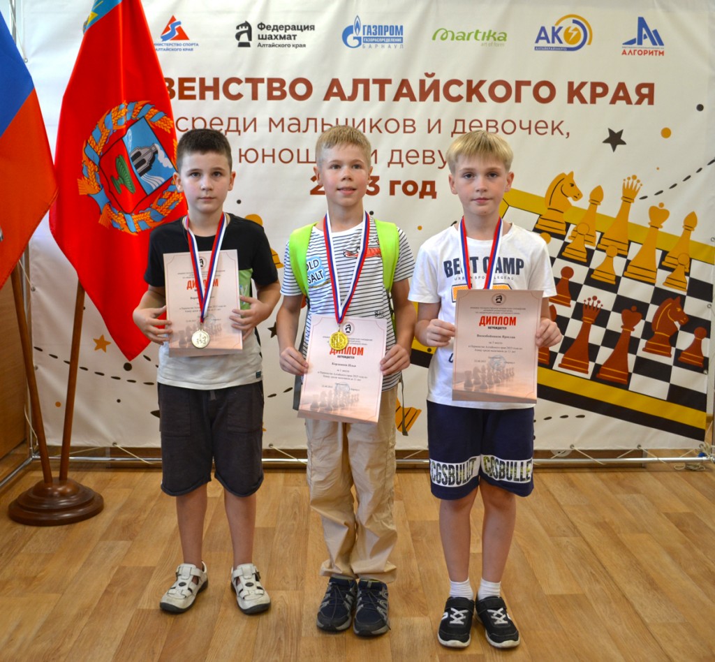 У мальчиков до 13 лет победителем вышел барнаулец Михаил Ларионов – 5,5 очка из 6. Серебро завоевал Калион Бармин из Белокурихи (5 очков), бронзу – Егор Мещеряков из Барнаула (3,5 очка), опередивший по дополнительным показателям ещё одного представителя краевой столицы Владислава Петрашко.