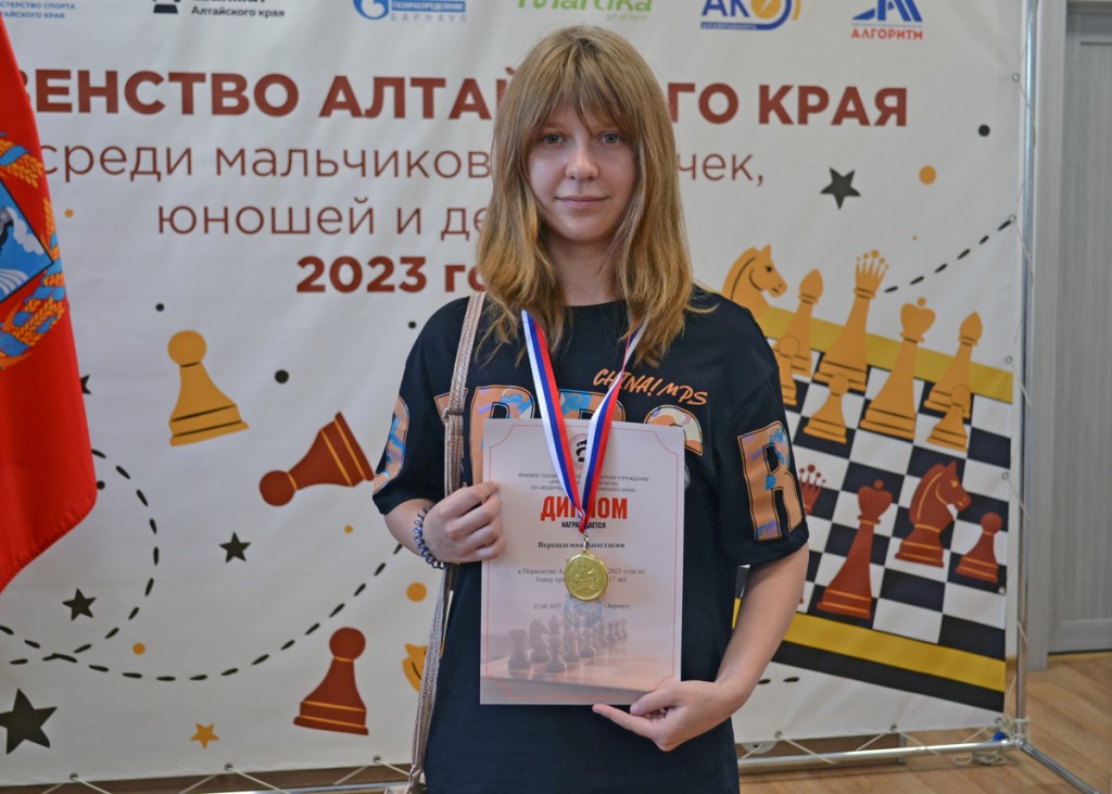 Юноши и девушки до 17 лет играли вместе, поскольку из представительниц прекрасного пола заявилась только Анастасия Верещагина из Баево. Она показала хорошую игру и финишировала второй в общем зачёте с результатом 6 очков из 7 возможных. А на награждении, естественно, получила золотую медаль.