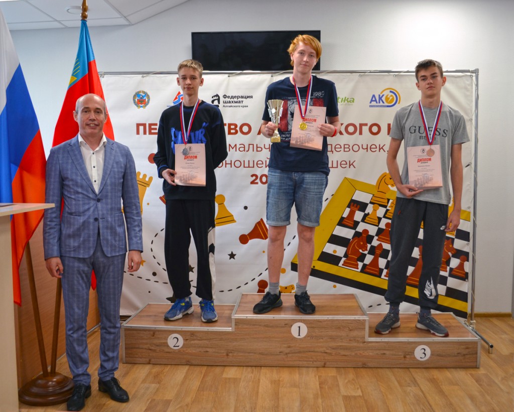 Среди юношей до 17 лет подтвердил статус рейтинг-фаворита барнаулец Михаил Горлов. Его результат – 8 очков из 9 возможных. Серебро взял бийчанин Никита Кобелев, бронзу – барнаулец Владислав Соболев, у обоих по 7 очков. Почти всю дистанцию в призовой зоне находился Павел Макаров из Тальменки, но поражения чёрным цветом в заключительных турах от Кобелева и Соболева отбросили его на четвёртую позицию (6 очков).