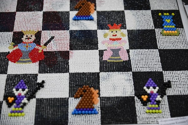 На экспозиции представлено более 200 работ, выполненных самыми разнообразными методами и техниками. Шахматная игра представлена в виде рисунков, поделок и даже мультфильма. Некоторые работы съедобные, к примеру, на имбирном прянике изобразили главную героиню нашумевшего сериала «Ход королевы».