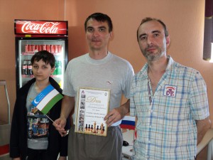 Большой любитель шахмат и владелец кафе «Золотая долина» Акмал Умурзоков,как и обещал, создал прекрасные условия для игры. Благодаря располагающей, даже можно сказать очень вкусной обстановке, все участники показали, на что они способны. В 5-м туре первую турнирную партию провели между собой отец и сын Марчуки. Ростислав, скорее всего, пожалел папу, ведь позиция на доске была явно в его пользу, но – боевая ничья! Не пошла игра у другого блицора – Олега Чувилина. А вот кто порадовал своей стабильностью, так это мастер ФИДЕ Алексей Бочкарев. Он в последнее время регулярно попадает в призеры – хотя звание, в общем-то, обязывает. Хорошо провели турнир Дмитрий Слизунков, Арсений Цепенников и Александр Долгов. Стабильную игру показал Вячеслав Колодин (он занял весьма высокое 6-е место). Интересный эпизод по ходу дистанции случился с Юрием Деньгой. Он «подвел» ветеранов и 25 июня не поехал с ними на выездной турнир на природу, за что попал под «репрессии» председателя ветеранской комиссии Дмитрия Гришина. Расстроенный Юра получил в первых четырех турах сплошные «баранки». Пришлось срочно его реабилитировать, и окрыленный Деньга в остальных пяти партиях одерживал только победы.