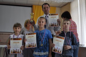 В турнире «С» за призовые места до конца боролись Ефим Хурчаков (тренер Татьяна Цепенникова) и Александр Плотников (тренер Виктор Белых). Ефим шел по дистанции очень уверенно, имел 5,5 очков из 7 и, казалось, что его уже никто не сможет остановить. Однако, все борются за победу до последней партии. Соперники Ефима не исключение. Неудачи последних туров отбросили его, к сожалению, на 8-е место, Хотя в целом надо признать результат его выступления в Кольцово хорошим. Надо продолжать работать дальше – впереди еще много радостей и огорчений. В этом возрасте ребята в командном соревновании также завоевали «бронзу». Команда «Дружба» в составе двух Александров – Плотникова и Правдина (тренер Сергей Якимов), а также Валерии Матейс (тренер Сергей Якимов) – смогла пробиться на пьедестал. Поздравляем наших воспитанников, тренеров и родителей ребят с удачным выступлением!