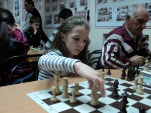 В шестом туре Вика достаточно уверенно обыграла нашу соотечественницу – Ирину Попову (с которой, кстати, она на Первенстве России в апреле играла в рапид и уступила) – и вышла на показатель 5 из 6! В седьмом туре ей предстояла встреча с сильной болгарской соперницей. Вика со своим тренером – Владимиром Геннадьевичем Суторихиным – угадала с дебютом, получила хорошую позицию, достаточно уверенно провела начальную стадию миттельшпиля, но… потом случилось что-то необъяснимое, показалось, что в какой-то момент Вика просто испугалась, что может набрать 6 очков из 7 возможных и ворваться в группу лидеров. Она вдруг стала играть боязливо, несколько раз прошла мимо в общем-то несложных для своего уровня возможностей выиграть. Этим не замедлила воспользоваться более опытная соперница и в итоге наказала Вику за нерешительность. Так появилось первое поражение.