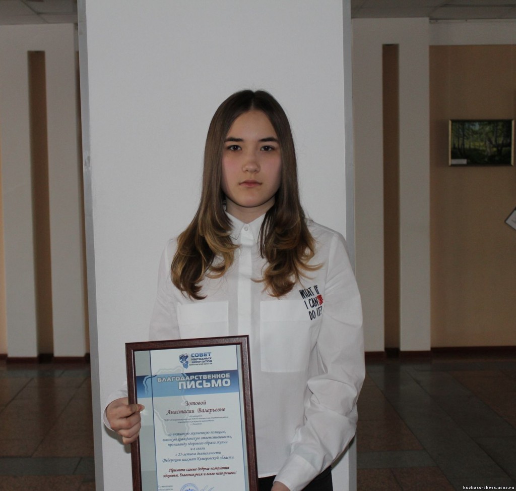 Кемеровская областная шахматная федерация обратилась ко всем сибирским коллегам с просьбой принять участие в интересном голосовании. В соседнем с нами регионе проходит определение победителей и лауреатов ежегодной премии «Спортсмен года в Кузбассе» по версии интернет-портала и журнала «Кузбасс спортивный». В ходе голосования посетители портала «Кузбасс спортивный» выбирают лучшего на их взгляд спортсмена 2016 года! В конкурсе участвует и юная шахматистка Анастасия Зотова. Просим шахматистов и всех любителей шахмат Сибири поддержать нашу коллегу на Страница голосования или в социальной сети «ВКонтакте» https://vk.com/sport_kuzbass?w=wall-30262040_848