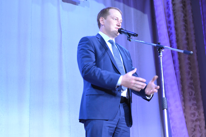 Всех собравшихся со сцены первым приветствовал временно исполняющий обязанности министра спорта Алтайского края Сергей Шиллер: