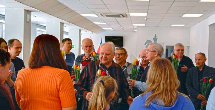 Шахматное соперничество протекало в тёплой дружеской атмосфере. Ветераны, как настоящие кавалеры, одарили своих соперниц цветами.