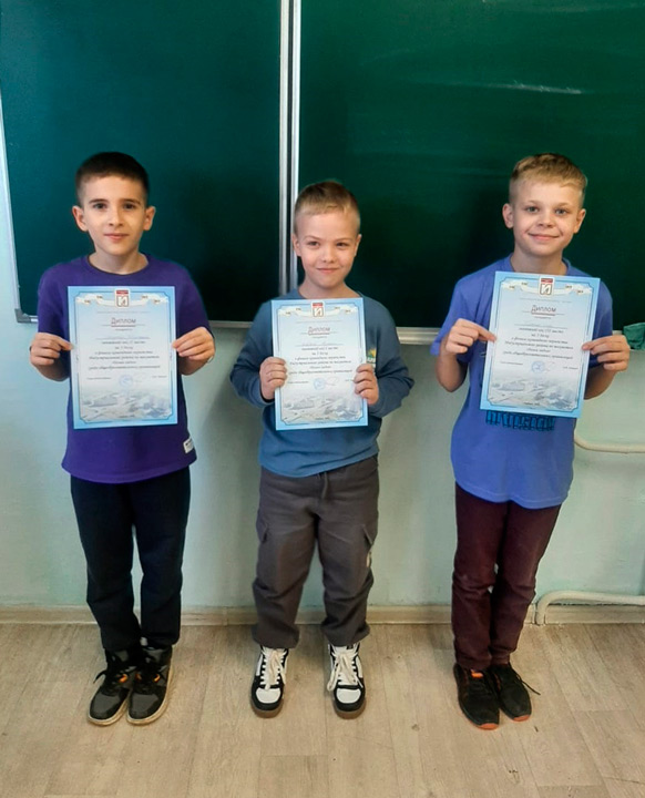 Третья: 1. Артём Червяков (гимназия 123-1) – 6,5 очка. 2. Дмитрий Логунков (лицей 101) – 5 очков. 3. Егор Пьянков (СОШ 128) – 5 очков.