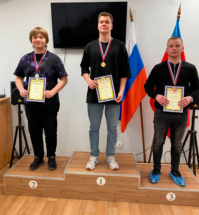В семь туров проводился и турнир по классическим шахматам. Но участников было уже меньше – 27 человек. Вновь самым стабильным оказался Александр Щербаков: у него 6 очков и вторая золотая медаль. Пьедестал он разделил со своими товарищами по «политеху»: Олег Русанов – серебряный призёр (5,5 очка), Константин Бугаев – бронзовый (5 очков). Лишь по коэффициенту медаль Бугаеву уступил Венцеслав Велизаров из РАНХиГС.
