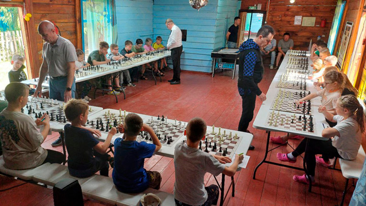 В тот же день участники отчётно-выборной конференции в ознакомительных целях посетили спортивно-тренировочный центр «Шахматная страна» в селе Озёрки Тальменского района. Этот детский оздоровительный лагерь в прошлом году был передан на баланс Краевого шахматного клуба и сменил свой профиль, в ближайшие годы планируется существенное обновление инфраструктуры и переход на круглогодичный режим работы. В этом году в «Шахматной стране» пройдёт четыре смены, каждая рассчитана на 50 детей. Осмотрев постройки и территорию лагеря, гости провели сеанс одновременной игры: на 27 досках с детьми сыграли международный мастер Максим Ивахин, Артём Поломошнов и Сергей Депчинский. Юные шахматисты добились трёх побед, ещё три партии завершились вничью.