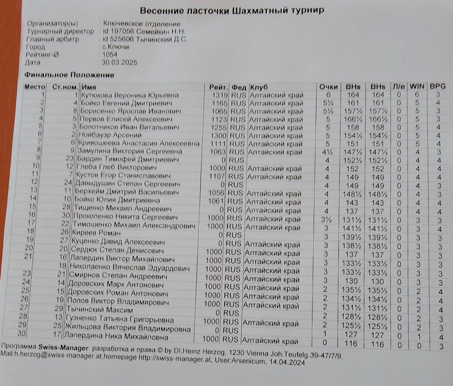 Во время школьных каникул 30 марта состоялся межрайонный шахматный турнир в Ключевском отделении Краевого шахматного клуба. Его участниками стали 30 учащихся из Славгородского, Кулундинского, Благовещенского и Ключевского районов.