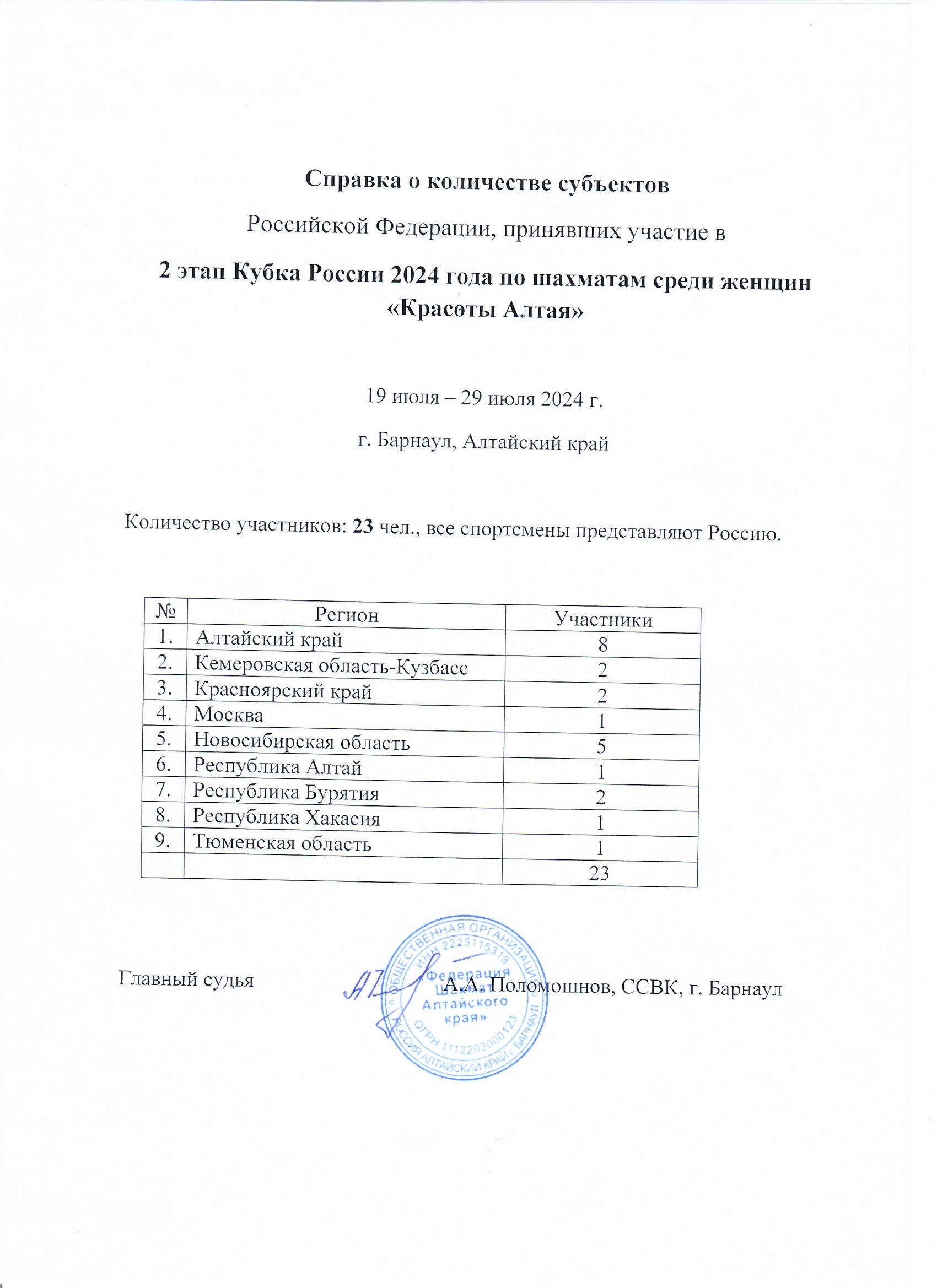 20:00 – заседание судейской коллегии