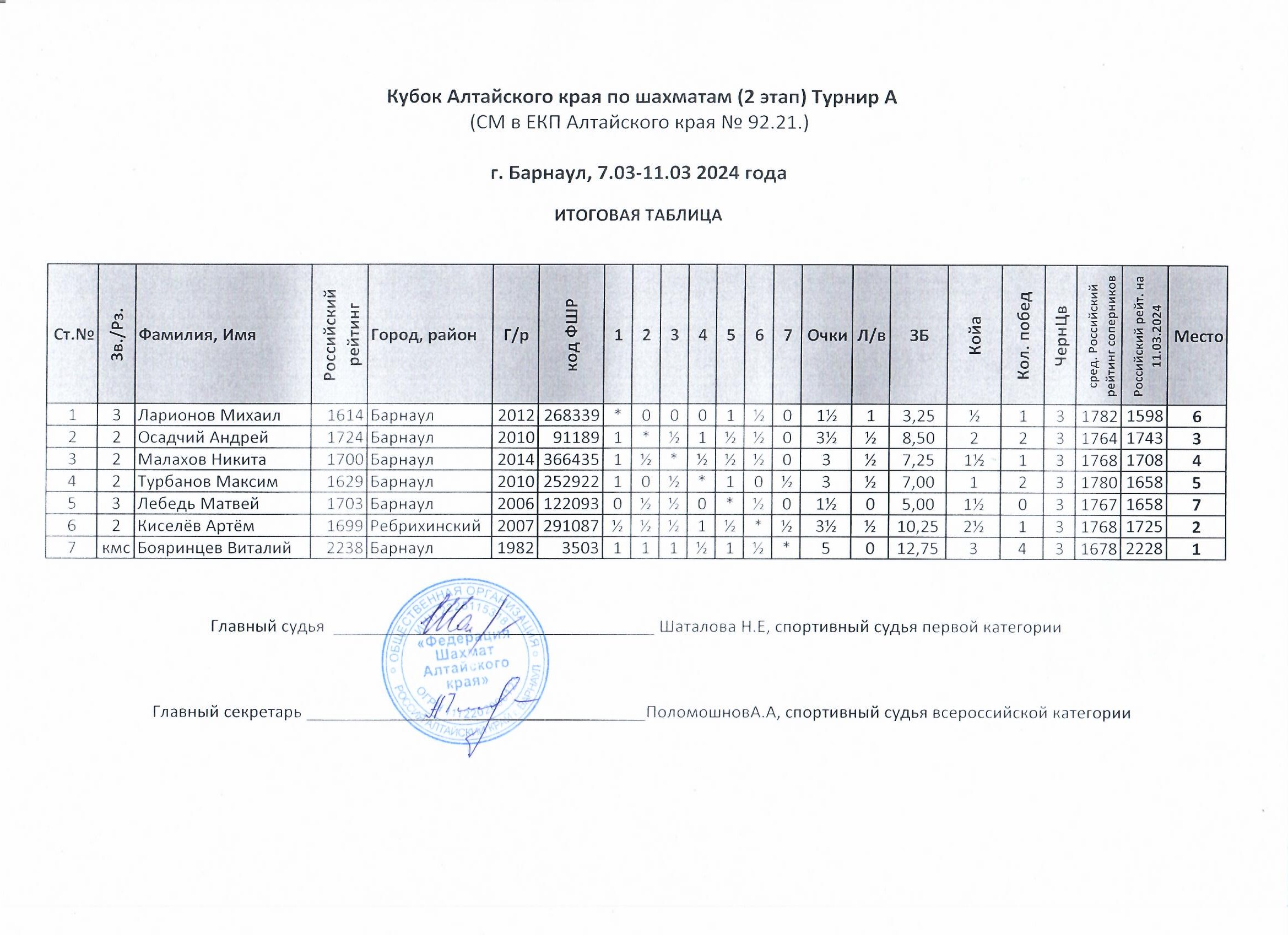 Система проведения: швейцарская, 7 туров.