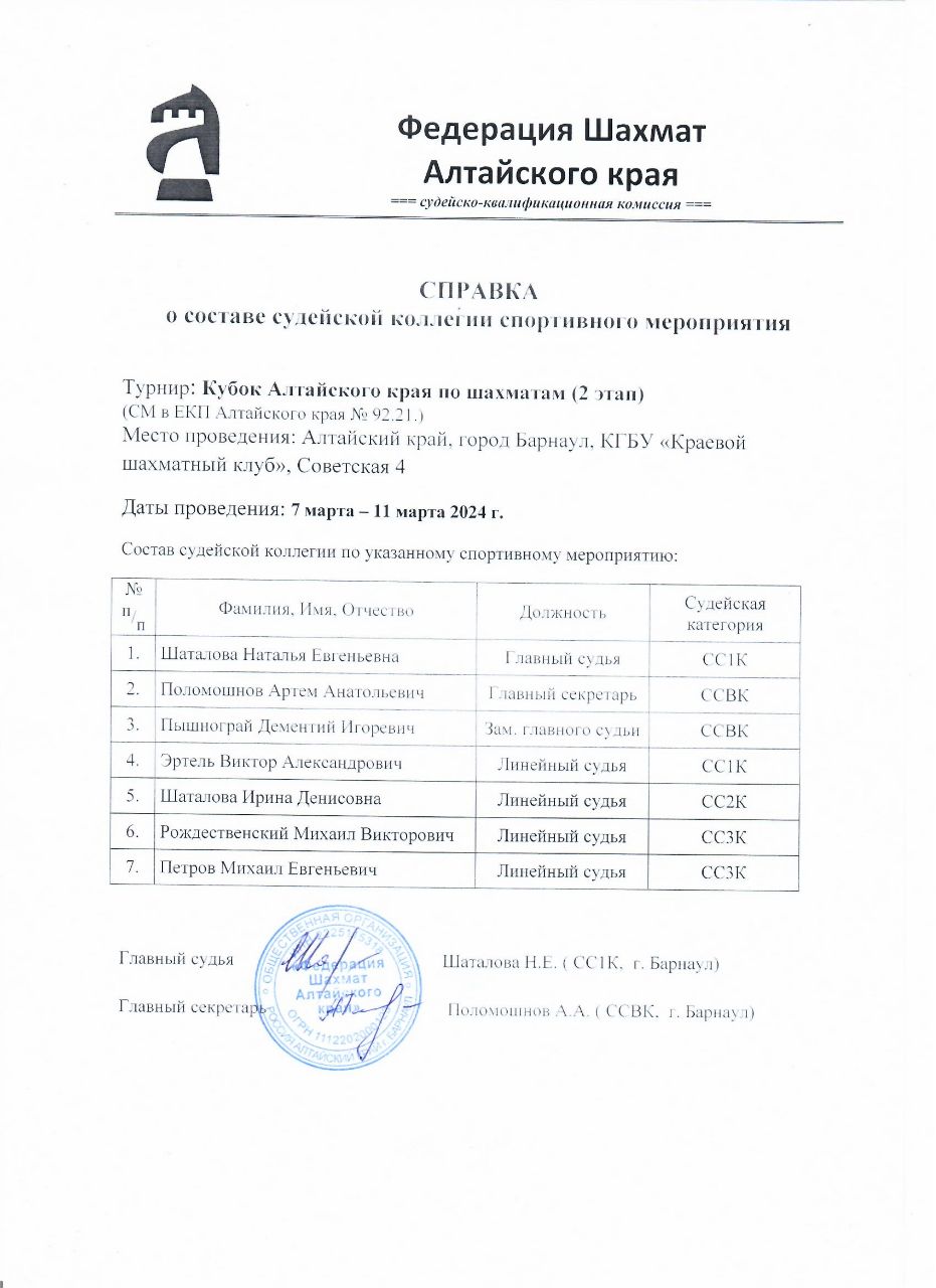 Закрытие соревнований – через 60 минут после окончания 7-го тура.
